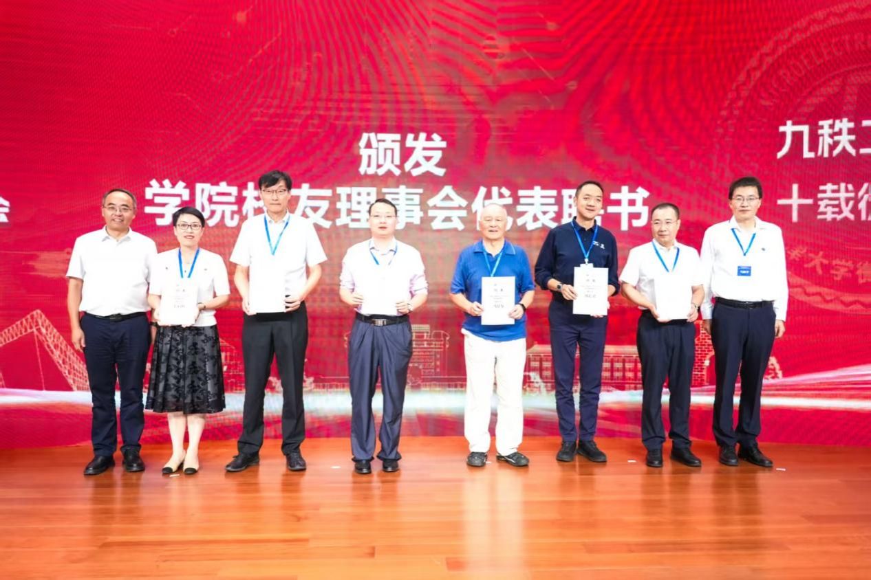 胡文平、马凯学向日漫 第四届校友会理事代表颁发聘书。
