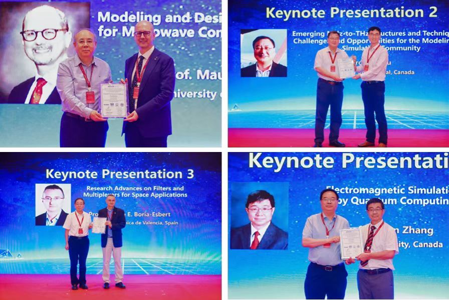 东南大学洪伟教授(IEEE Fellow),香港城市大学郭永新教授(IEEE Fellow、新加坡工程院院士),浙江大学李尔平教授(IEEE Fellow、新加坡工程院院士、美国电磁科学院院士),浙江大学尹文言教授(IEEE Fellow)共同主持大会主旨报告环节。意大利帕维亚大学Maurizio Bozzi教授(IEEE Fellow、IEEE MTT-S 2024年主席)、加拿大蒙特利尔大学吴柯教授(IEEE Fellow、加拿大工程院院士、加拿大皇家科学院院士)、瓦伦西亚理工大学Vicente E. Boria-Esbert教授(IEEE Fellow)、卡尔顿大学张齐军教授(IEEE Fellow、加拿大工程院院士)受邀发表主旨报告。
