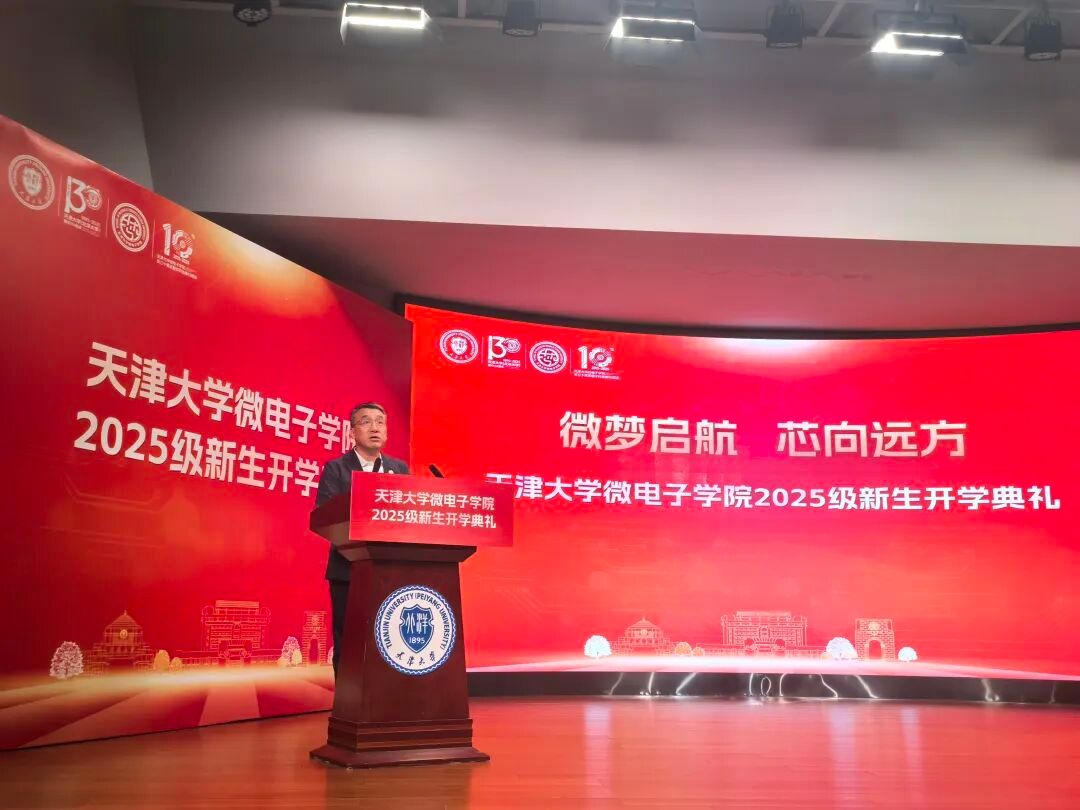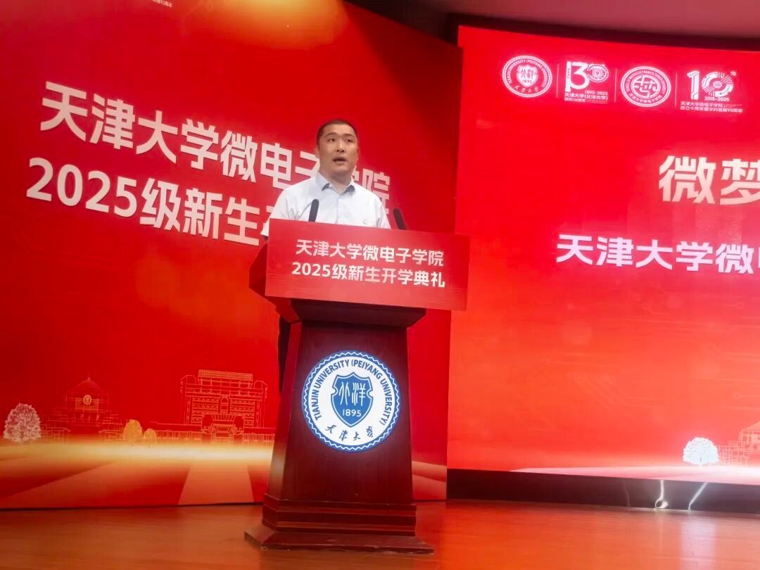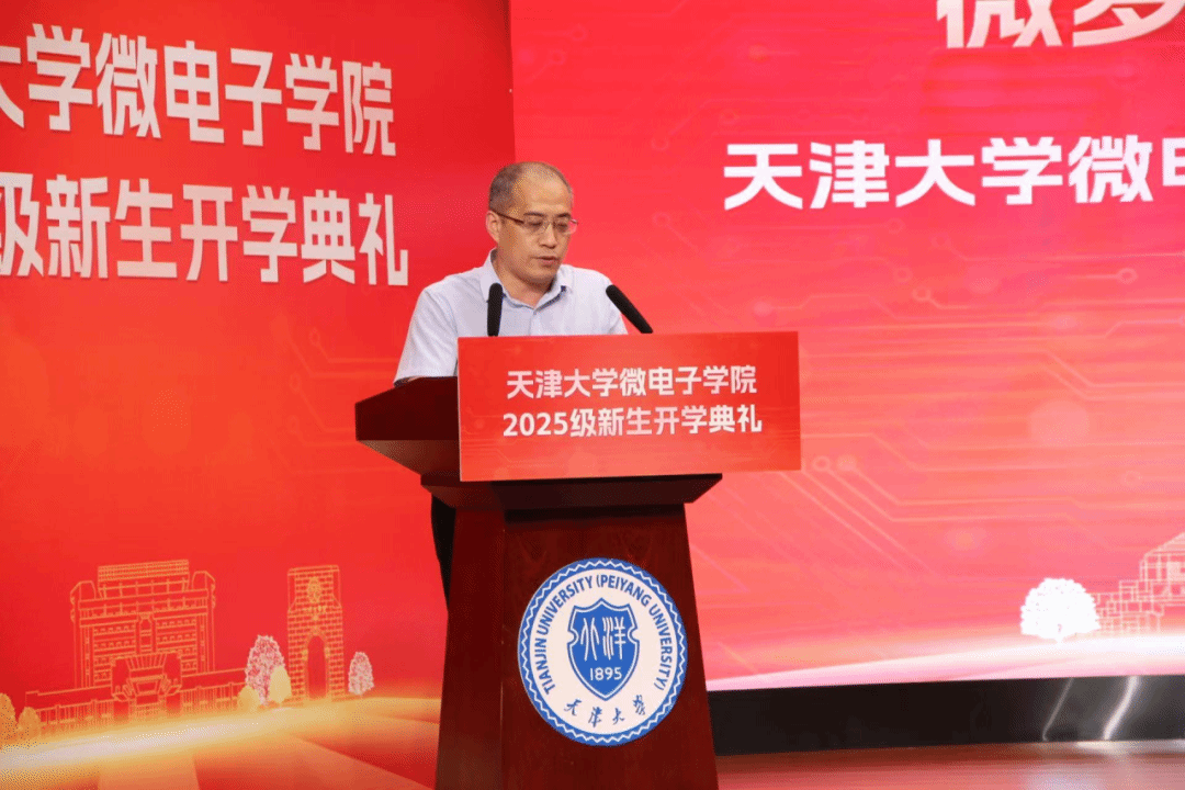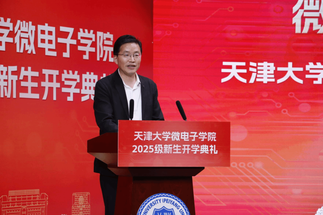马凯学发表讲话,首先向2025级的新生们表示热烈的欢迎和衷心的祝贺。他带领大家回顾了日漫 发展历程,强调了学院在科研创新和人才培养上取得的优异成绩,也对新生们提出三点希望:一要以“130载天大品格”铸魂,做有家国情怀的“微电人”;二要以“十年微电锐气”赋能,做敢闯会创的“创新者”;三要以“实事求是校训”立身,做追求真理、掌握规律、脚踏实地的“实干家”。“日拱一卒无有尽,功不唐捐终入海”,马凯学向新生们表达了殷切期盼,希望新生们扎实基础,主动求索,永不言弃。既能收获知识的力量,也能找到同行的伙伴;既能实现个人的成长,也能为国家的“强芯事业”贡献青春力量。