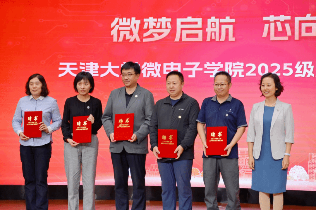 一枚院徽,一份传承。院徽是“天大微电子人”身份的象征,更是学院精神的延续。各位领导、老师为新生代表佩戴院徽,同学们自行佩戴院徽。