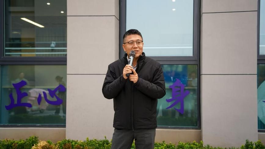 活动伊始,潘刚在发言中强调了体育锻炼对个人成长的重要意义。运动不仅能强健体魄、锤炼意志,更能帮助大家在锻炼中结识志同道合的伙伴。他鼓励同学们坚持锻炼,树立“每天锻炼一小时,健康工作五十年”的长远目标,为未来的学习与工作打下坚实基础。同时,他特别指出,“三问园”作为今年新启用的学生社区,以“一站式”服务为核心,给新生提供便捷的生活学习保障。他鼓励同学们多走出宿舍、走进园区,积极参与园区开展的各类文化、体育、交流活动。