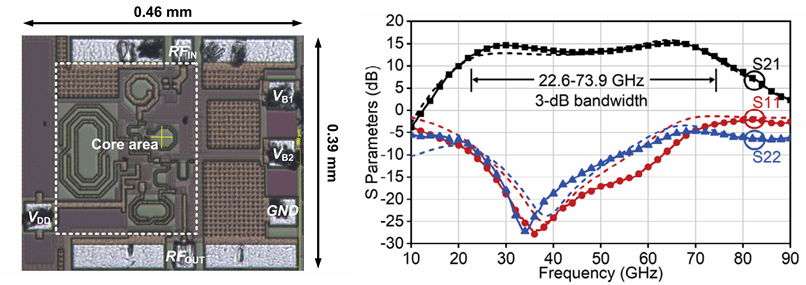 该工作以“Design and Analysis of a 22.6-to-73.9 GHz Low-Noise Amplifier for 5G NR FR2 and NR-U Multiband/Multistandard Communications”为题发表,第一作者为博士生赵增龙,通讯作者为孟凡易教授。